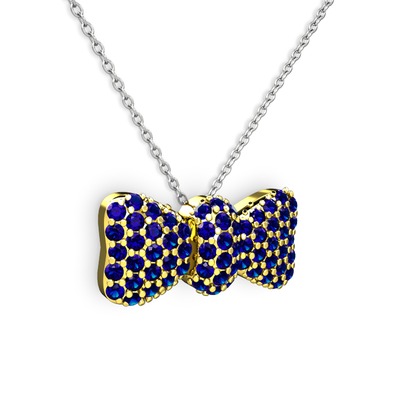 Lab safir 14 ayar altın kolye (40 cm beyaz altın rolo zincir)