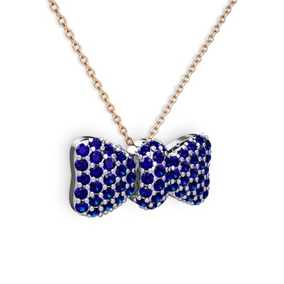 Lab safir 18 ayar beyaz altın kolye (40 cm rose altın rolo zincir)