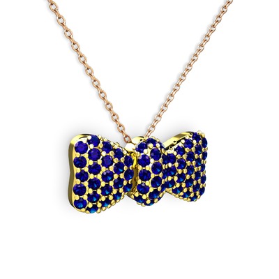 Lab safir 8 ayar altın kolye (40 cm gümüş rolo zincir)