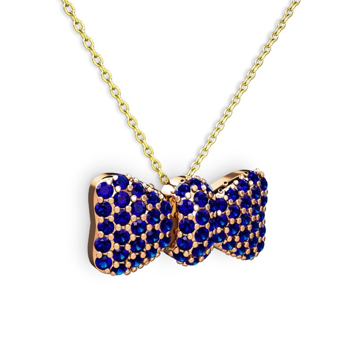 Lab safir 8 ayar rose altın kolye (40 cm altın rolo zincir)