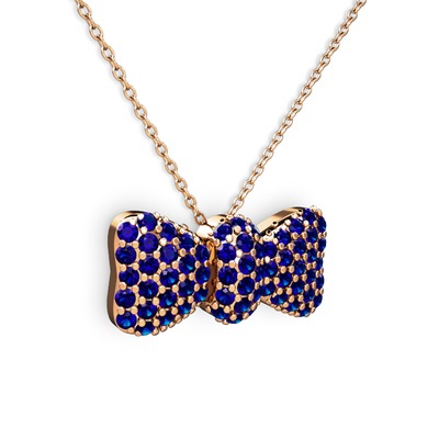 Lab safir 8 ayar rose altın kolye (40 cm gümüş rolo zincir)