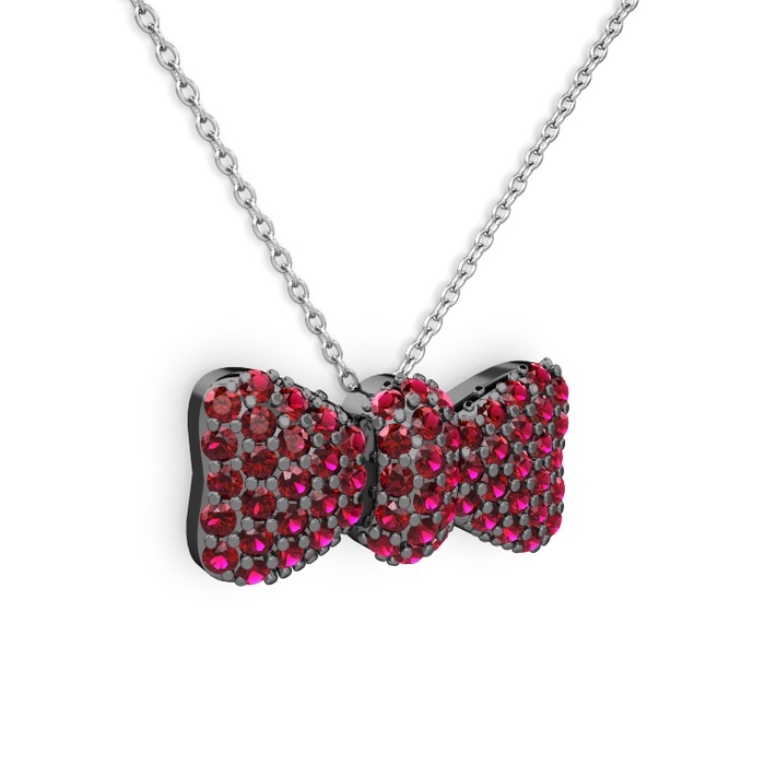Rodolit garnet 925 ayar siyah rodyum kaplama gümüş kolye (40 cm beyaz altın rolo zincir)