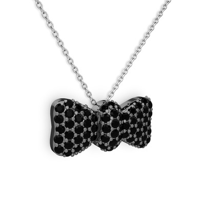 Siyah zirkon 925 ayar siyah rodyum kaplama gümüş kolye (40 cm beyaz altın rolo zincir)