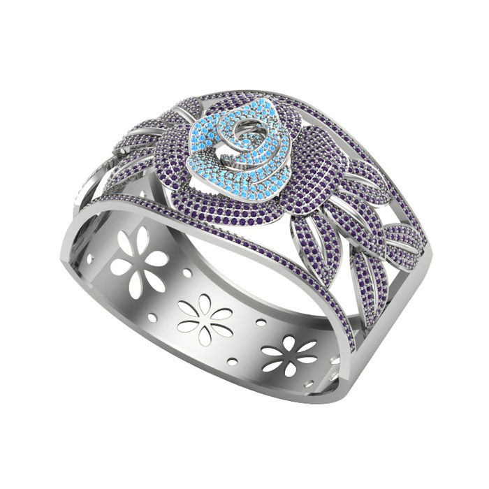 Akuamarin ve ametist 925 ayar gümüş bilezik