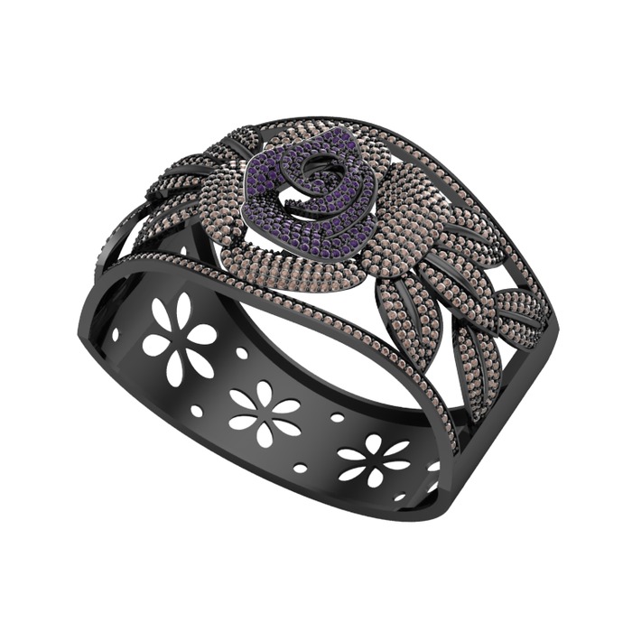 Ametist ve dumanlı kuvars 925 ayar siyah rodyum kaplama gümüş bilezik