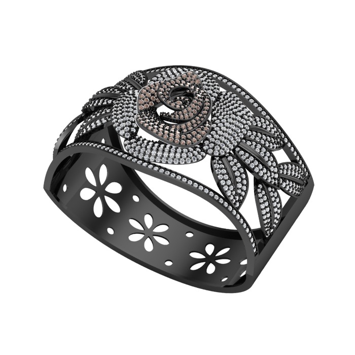 Dumanlı kuvars ve beyaz zirkon 925 ayar siyah rodyum kaplama gümüş bilezik