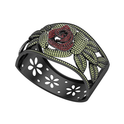 Garnet ve peridot 925 ayar siyah rodyum kaplama gümüş bilezik