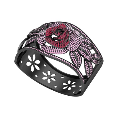 Kök yakut ve pembe kuvars 925 ayar siyah rodyum kaplama gümüş bilezik
