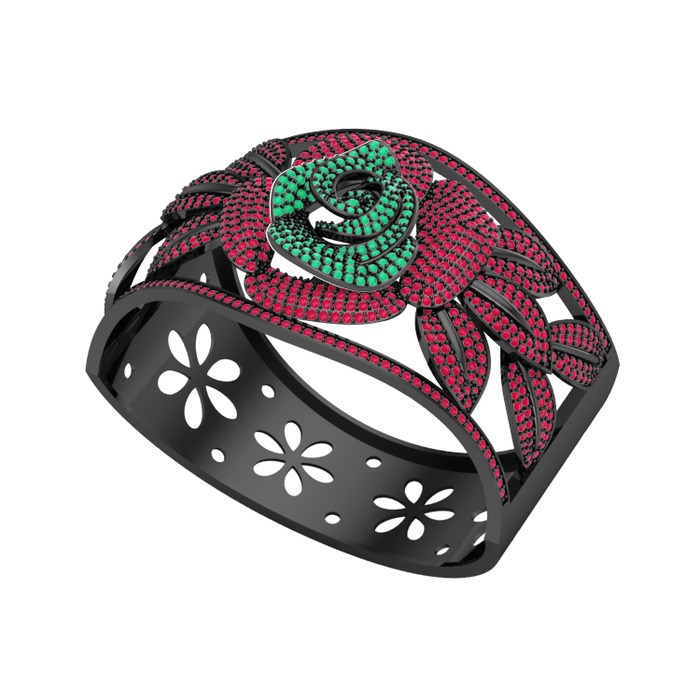 Kök zümrüt ve kök yakut 925 ayar siyah rodyum kaplama gümüş bilezik