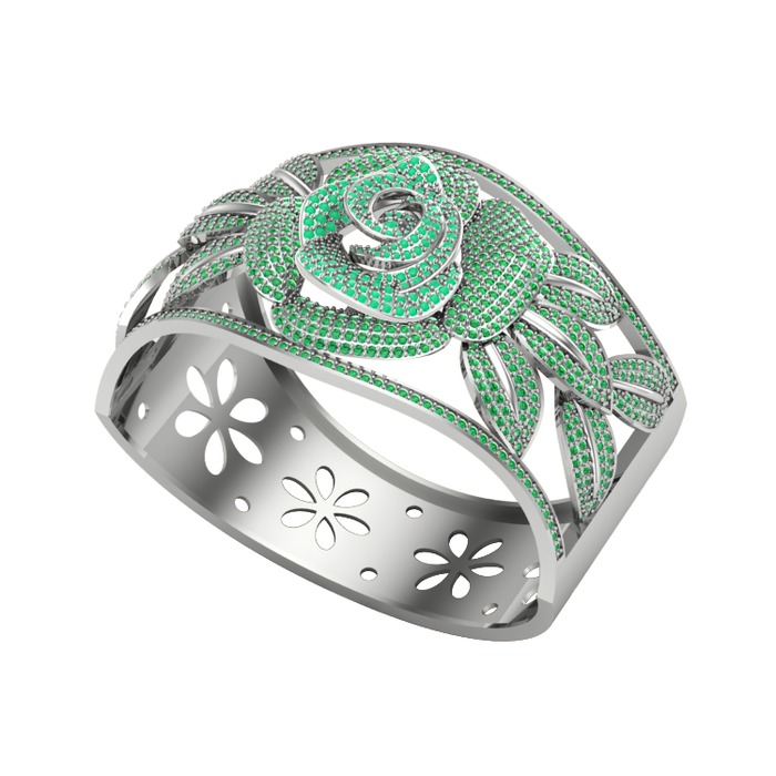 Kök zümrüt ve yeşil kuvars 18 ayar beyaz altın bilezik