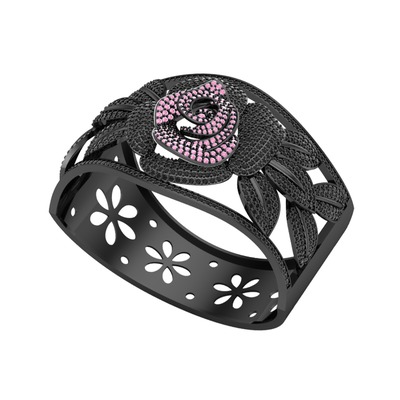 Pembe kuvars ve siyah zirkon 925 ayar siyah rodyum kaplama gümüş bilezik