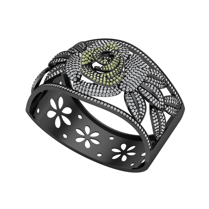 Peridot ve beyaz zirkon 925 ayar siyah rodyum kaplama gümüş bilezik