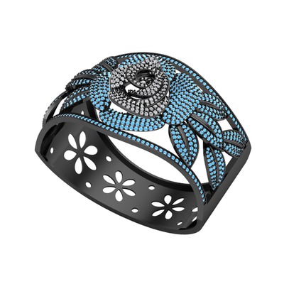 Pırlanta ve akuamarin 925 ayar siyah rodyum kaplama gümüş bilezik (3.85 karat)