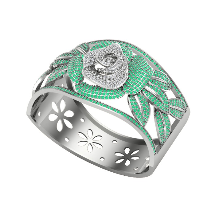 Pırlanta ve kök zümrüt 8 ayar beyaz altın bilezik (3.85 karat)