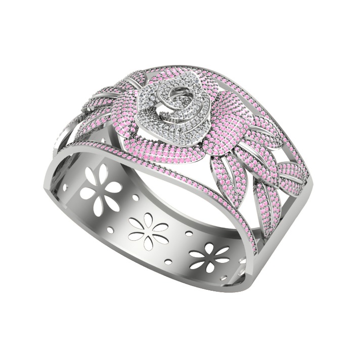 Pırlanta ve pembe kuvars 925 ayar gümüş bilezik (3.85 karat)