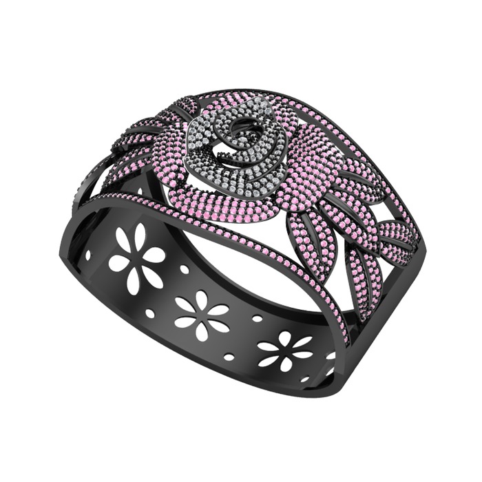 Pırlanta ve pembe kuvars 925 ayar siyah rodyum kaplama gümüş bilezik (3.85 karat)