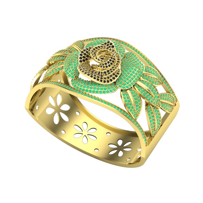 Siyah zirkon ve kök zümrüt 18 ayar altın bilezik