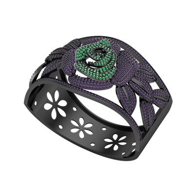 Yeşil kuvars ve ametist 925 ayar siyah rodyum kaplama gümüş bilezik