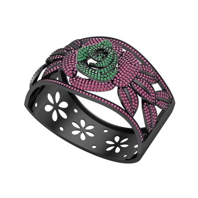 Yeşil kuvars ve rodolit garnet 925 ayar siyah rodyum kaplama gümüş bilezik