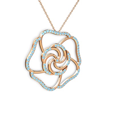 Akuamarin 8 ayar rose altın kolye (40 cm rose altın rolo zincir)