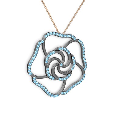 Akuamarin 925 ayar siyah rodyum kaplama gümüş kolye (40 cm rose altın rolo zincir)