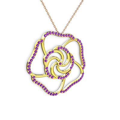 Ametist 14 ayar altın kolye (40 cm gümüş rolo zincir)