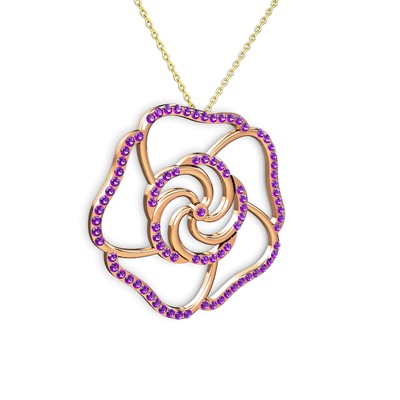 Ametist 14 ayar rose altın kolye (40 cm altın rolo zincir)