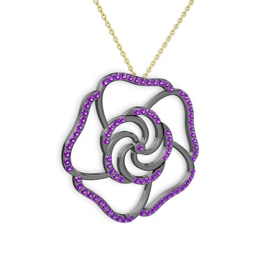 Ametist 925 ayar siyah rodyum kaplama gümüş kolye (40 cm altın rolo zincir)
