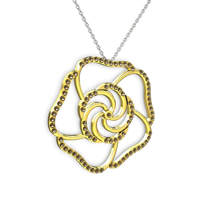 Dumanlı kuvars 14 ayar altın kolye (40 cm beyaz altın rolo zincir)