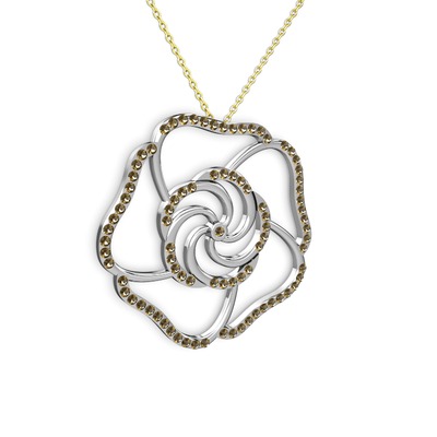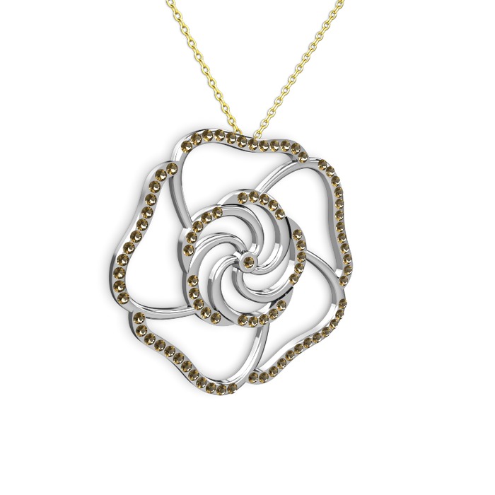 Dumanlı kuvars 8 ayar beyaz altın kolye (40 cm altın rolo zincir)