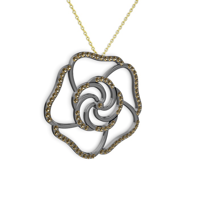 Dumanlı kuvars 925 ayar siyah rodyum kaplama gümüş kolye (40 cm altın rolo zincir)