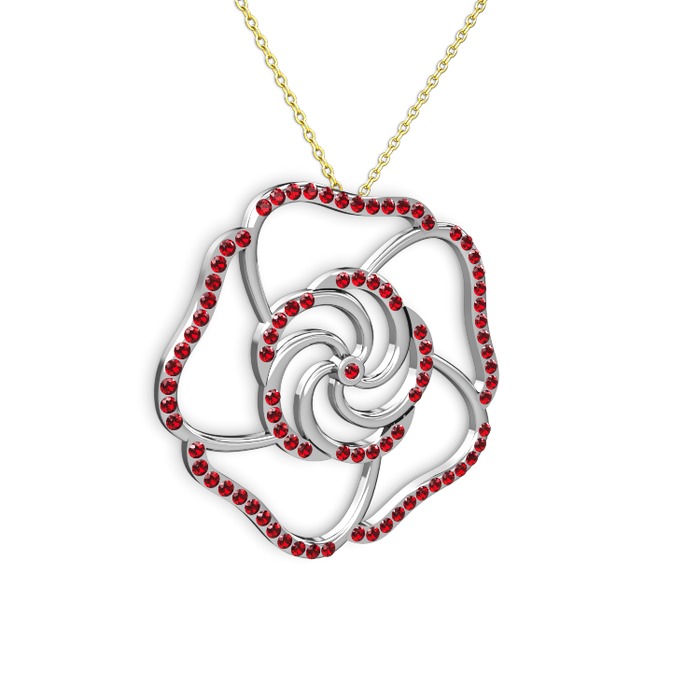 Garnet 14 ayar beyaz altın kolye (40 cm altın rolo zincir)