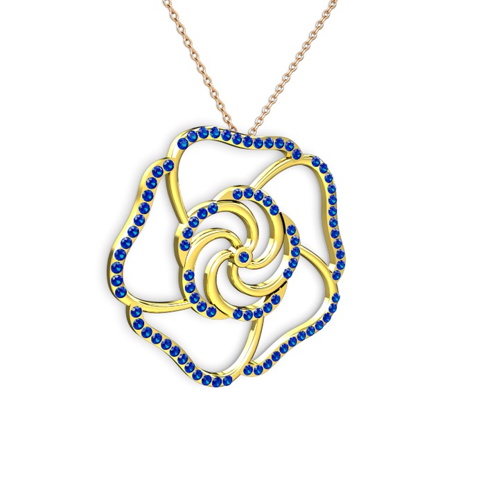 Lab safir 14 ayar altın kolye (40 cm rose altın rolo zincir)