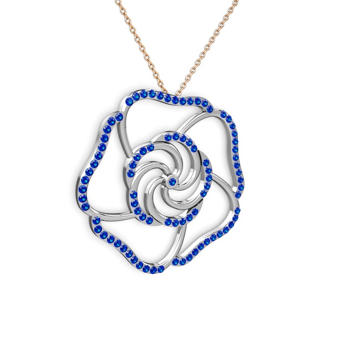 Lab safir 14 ayar beyaz altın kolye (40 cm gümüş rolo zincir)