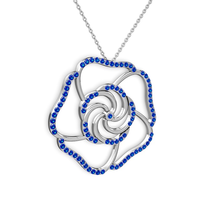Lab safir 8 ayar beyaz altın kolye (40 cm beyaz altın rolo zincir)