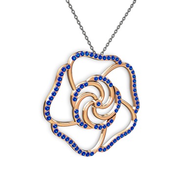 Lab safir 8 ayar rose altın kolye (40 cm gümüş rolo zincir)