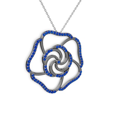 Lab safir 925 ayar siyah rodyum kaplama gümüş kolye (40 cm beyaz altın rolo zincir)