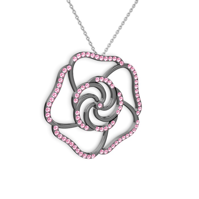 Pembe kuvars 925 ayar siyah rodyum kaplama gümüş kolye (40 cm gümüş rolo zincir)
