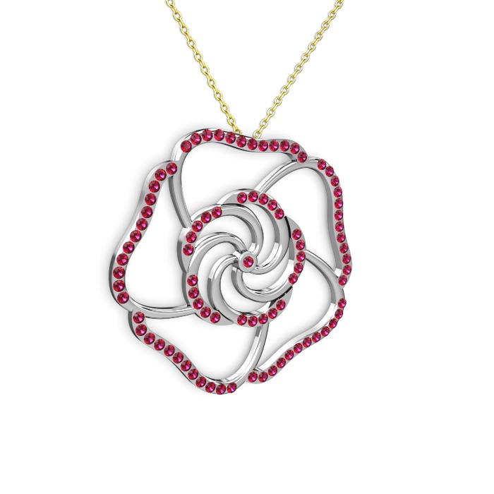 Rodolit garnet 14 ayar beyaz altın kolye (40 cm gümüş rolo zincir)