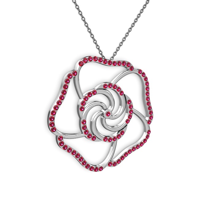 Rodolit garnet 8 ayar beyaz altın kolye (40 cm gümüş rolo zincir)