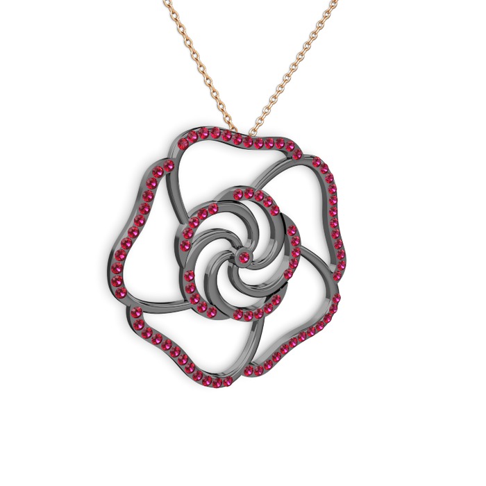 Rodolit garnet 925 ayar siyah rodyum kaplama gümüş kolye (40 cm rose altın rolo zincir)