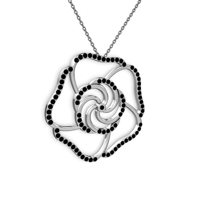 Siyah zirkon 14 ayar beyaz altın kolye (40 cm gümüş rolo zincir)