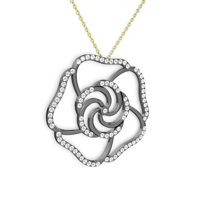 Swarovski 925 ayar siyah rodyum kaplama gümüş kolye (40 cm altın rolo zincir)