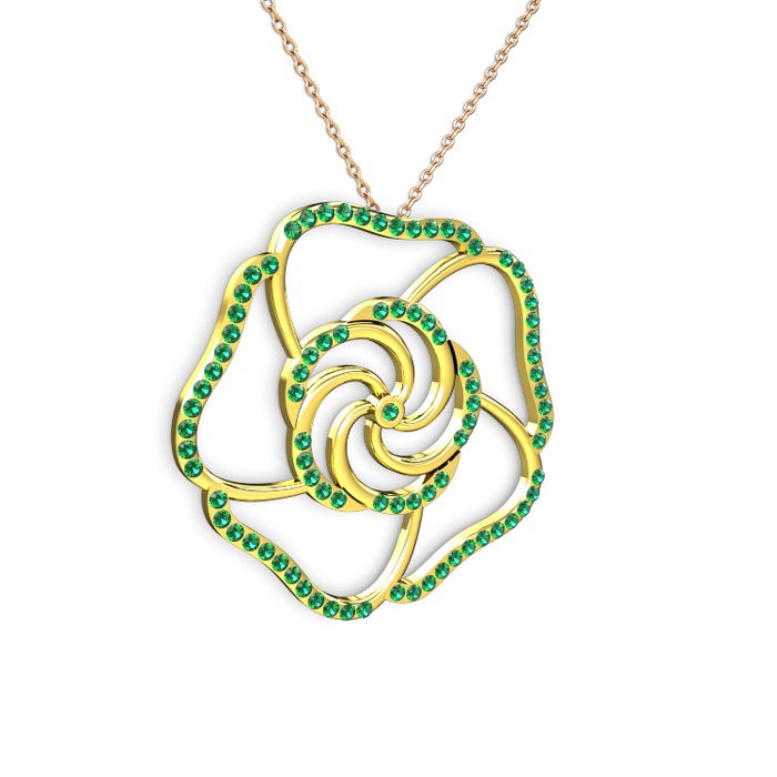 Yeşil kuvars 14 ayar altın kolye (40 cm rose altın rolo zincir)