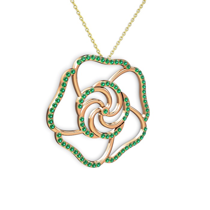 Yeşil kuvars 14 ayar rose altın kolye (40 cm altın rolo zincir)
