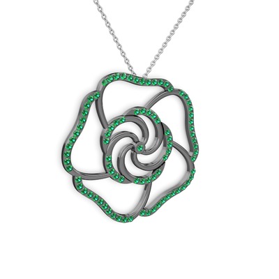 Yeşil kuvars 925 ayar siyah rodyum kaplama gümüş kolye (40 cm beyaz altın rolo zincir)