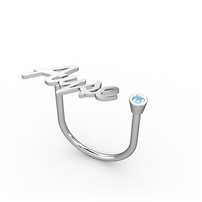 Akuamarin 8 ayar beyaz altın yüzük (4 karakterli el yazısı)