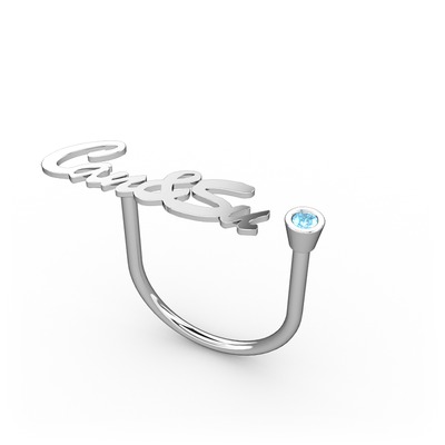 Akuamarin 8 ayar beyaz altın yüzük (6 karakterli el yazısı)