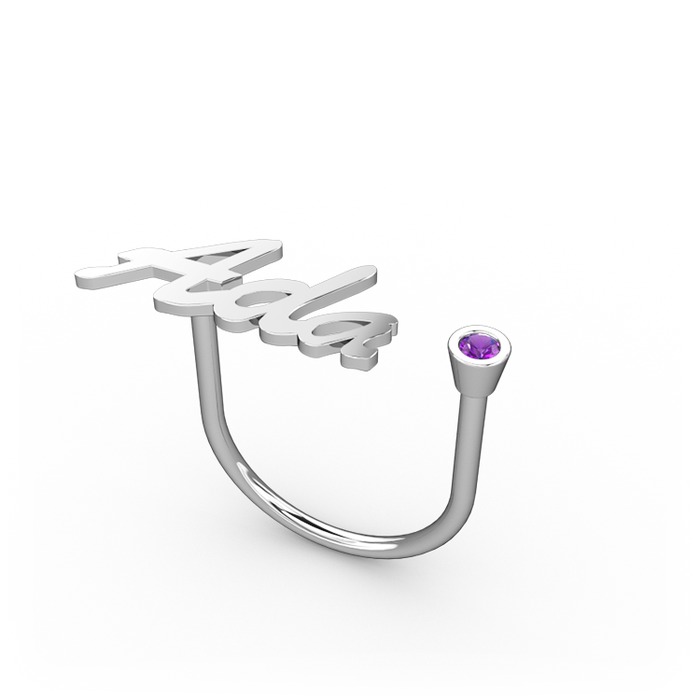 Ametist 14 ayar beyaz altın yüzük (3 karakterli el yazısı)