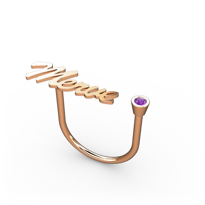 Ametist 14 ayar rose altın yüzük (5 karakterli el yazısı)